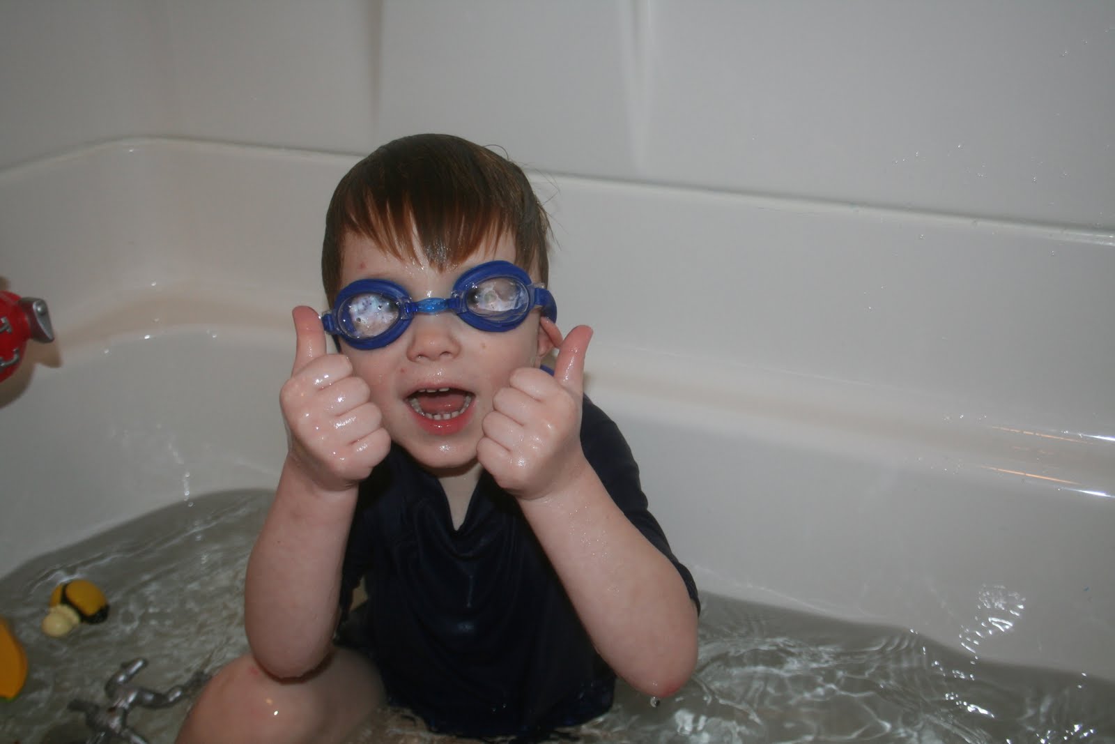 But really, the Master of the Baths in our house is Jamison. The kids take 2-3 baths a day. Oddly, he still never comes out 100% clean. And yes, he is wearing his swimming shirt in the tub with goggles. I don't care - 20 MINUTES OF FREE TIME PEOPLE!